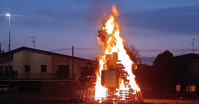 Il falò è stato accesso oggi, domenica 1 febbraio, in piazza del mercato. Ad appiccare il fuoco il sindaco, Marco Baroffio, e il parroco, don Simone Chiarion