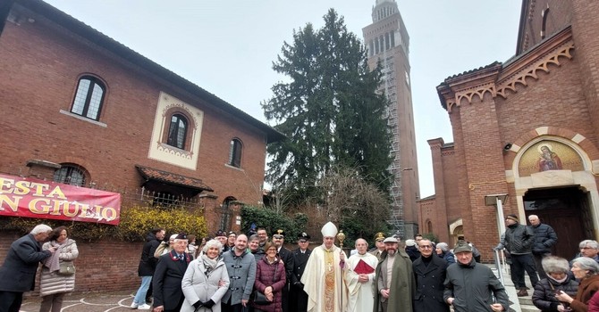 Moltissimi si sono riuniti in Piazza Paolo VI per assistere alla benedizione che ha decretato ufficialmente la chiusura del cantiere del campanile, avvenuta nella mattinata di domenica 1 febbraio in occasione della festa patronale di San Giulio
