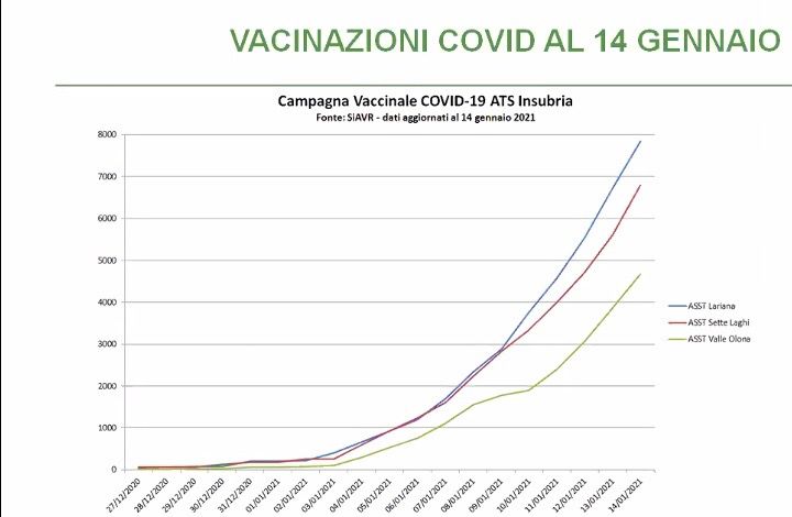 Se aumenta la curva dei contagi, sale anche quella delle somministrazioni dei vaccini a disposizione. Nel territorio di Asst Sette Laghi la cifra di chi - tra personale sanitario e ospiti delle Rsa - ha ricevuto il vaccino sfiora le settemila unità, nel territorio dell'Asst Valle Olona le cinquemila. Entro inizio febbraio dovrebbe partire anche la somministrazioni a quelle categorie di persone che fanno attività sanitaria non strettamente connessa al sistema regionale, mentre entro fine settimana prossima sarà ultimata la vaccinazione di ospiti e operatori delle Rsa del territorio. Poi si partirà con gli over 80.