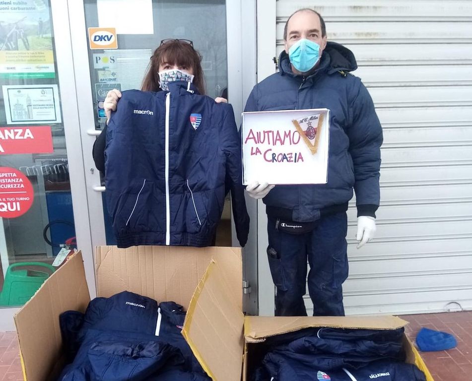 Aurora Pro Patria 1919 ha donato al Milan Club Milanistra, in prima linea nel sostegno al popolo croato, i giacconi biancoblù della storica stagione dello Scudetto di Serie D.