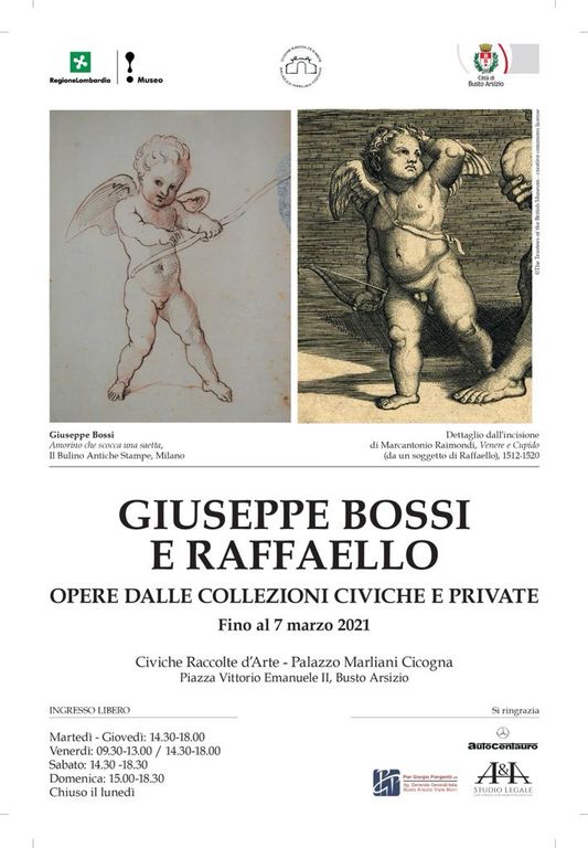 Una tappa - spiega il Comune - che rappresenta il contributo bustocco all’evento diffuso "Raffaello. Custodi del mito in Lombardia" ed è strettamente legata alla mostra "Giuseppe Bossi e Raffaello al Castello Sforzesco". Ma qui a Busto vengono per la prima volta inediti bossiani provenienti da collezioni private e le opere del pittore bustocco custodite dalle Civiche Raccolte, oltre a oggetti a lui appartenuti e mai esposti prima d’ora.