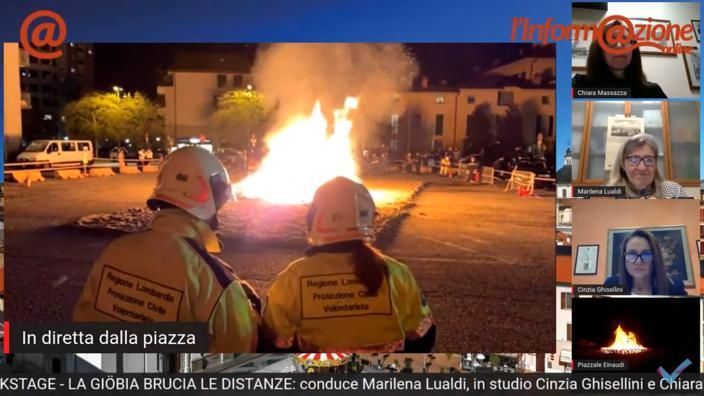 Nella trasmissione, condotta da Marilena Lualdi, si sono confrontati in diretta sul falò, sulle paure da bruciare, su sport, scuola e gli altri settori più scossi dall’emergenza sanitaria Chiara Massazza (psicologa ed esperta delle tradizioni) Cinzia Ghisellini (Acof e Panathlon club La Malpensa), Edoardo Toia (Magistero dei Bruscitti). Ma la diretta non poteva che coinvolgere anche la piazza, o meglio le piazze intervistate da Riccardo Canetta e Andrea Confalonieri, accanto al nostro editore di MoreNews Enrico Anghilante. E con Tiziano Riverso che ha portato la Giöbia dell'Informazione. In regia Gigi Galassi e Jonathan Sottocorna.