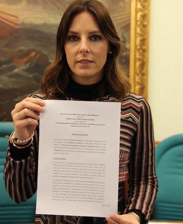 «Dopo la mia segnalazione alla Polizia Postale di Busto Arsizio di un gruppo social dedito allo scambio di materiale pedopornografico, all’adescamento di minori e al revenge porn, oggi un gruppo di associazioni – l’Osservatorio nazionale bullismo e disagio giovanile, la Fondazione Carolina, le associazioni Konsumer Italia e Allegamente – ha sottoscritto una denuncia alla Procura della Repubblica a carico della medesima chat dell’orrore». Lo ha dichiarato l’eurodeputata Isabella Tovaglieri, promotrice dell’iniziativa “Sicure senza cadere nella rete”, presentata oggi alla stampa presso la Camera dei Deputati in occasione della Giornata internazionale della Donna.