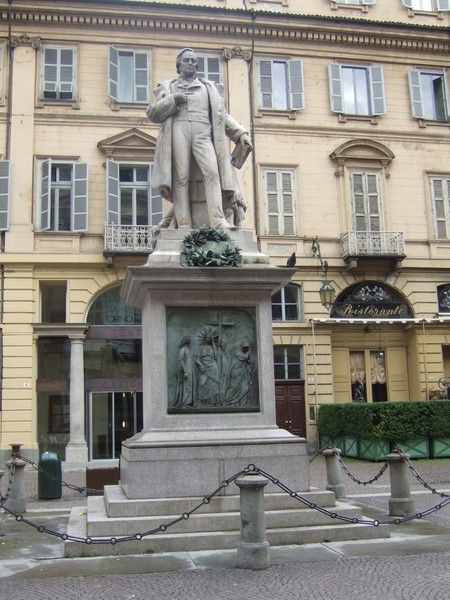 E, ancora, in piazza Carignano troviamo le statue di Vincenzo Gioberti, filosofo e primo presidente della Camera dei Deputati del Regno di Sardegna, e dello scrittore Vittorio Alfieri, divenuto un lume di sapienza per gli intellettuali risorgimentali negli ultimi anni della sua vita. Spostandosi di qualche metro, fino in piazza Castello, ecco comparire, di fronte a Palazzo Madama, il monumento anonimo all’Alfiere dell’Esercito Sardo, opera dello scultore ticinese Vincenzo Vela, inaugurata il 10 aprile 1859.