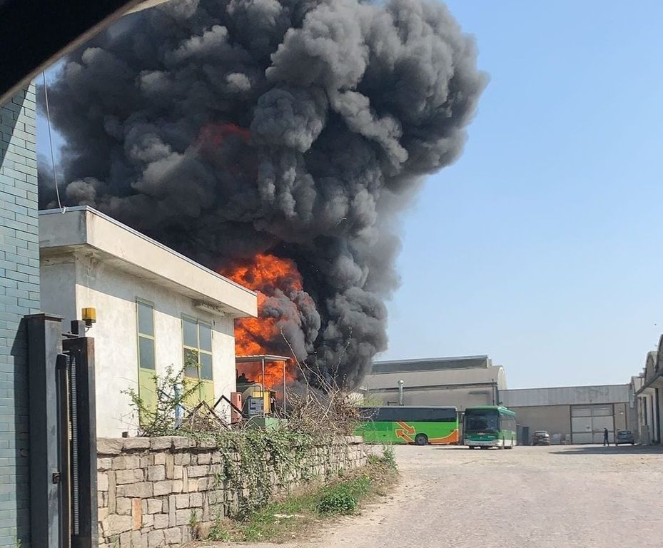 Incendio a Caronno Pertusella, fiamme al deposito degli autobus