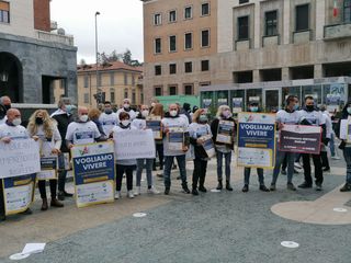 In piazza Monte Grappa questa mattina la protesta di bar, ristoranti, negozi, ambulanti e di tutto il terzo settore dell'intera provincia di Varese: «Siamo allo stremo»