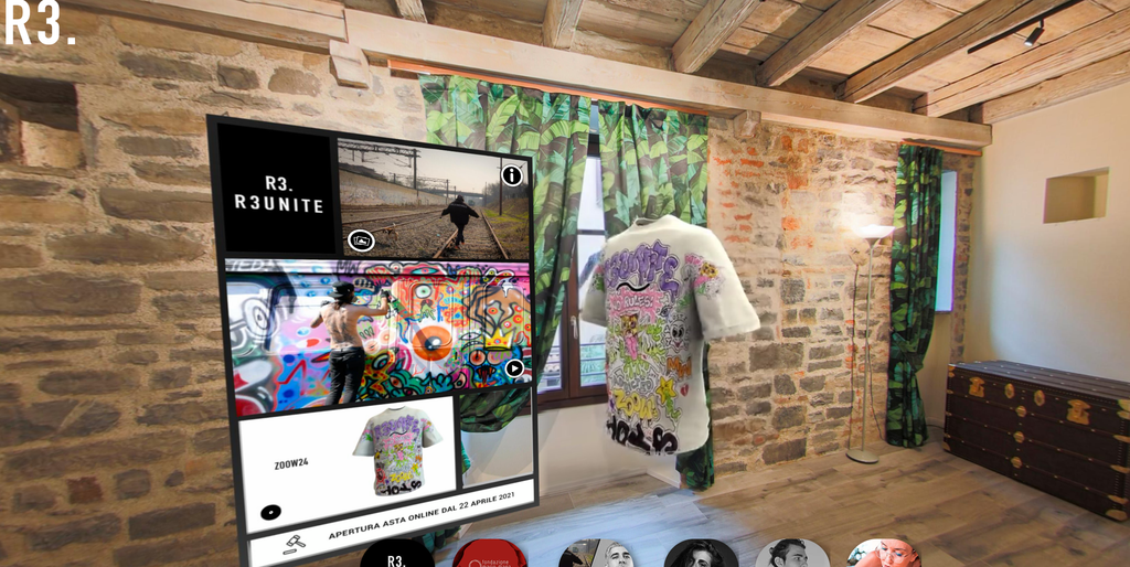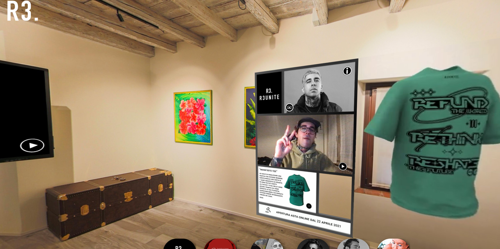 Si tratta - viene spiegato - di un innovativo showroom esplorabile in modo virtuale: qui verranno esposti e messi all’asta capi riciclati realizzati in collaborazione con artisti italiani. Nuova vita e nuovo scopo vengono offerti a T-shirt e felpe del brand di moda R3UNITE che normalmente andrebbero appunto scartate a causa di difetti di produzione.