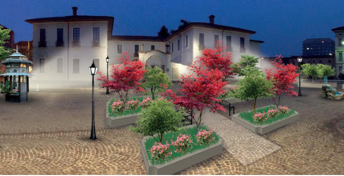 L’obiettivo è ottenere «una piazza piacevole, non un semplice luogo di passaggio». Completano il quadro, un gioco d’acqua che richiama la fontana-ruscello di via San Gregorio e dei punti luce dedicati alla facciata di Palazzo Cicogna.
