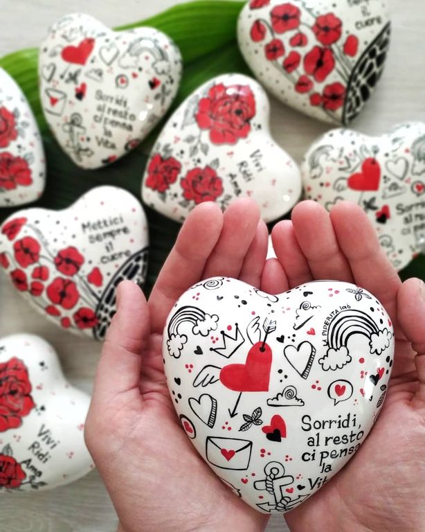 Marina D'Eredità lavora l'argilla e modella con le proprie mani gli “oggetti del cuore”, ceramiche per la decorazione della casa e della persona.
