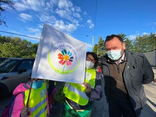 Tre i punti di partenza per un unico arrivo: la scuola di Velate. Il principale punto di partenza davanti al cimitero dove è stata pensata una mobilità kiss and go: arrivi, saluti, lasci e prosegui. Presenti questa mattina gli assessori Rossella Dimaggio e Dino De Simone, le insegnanti della scuola che hanno costruito il progetto, e la preside Silvia Sommaruga.