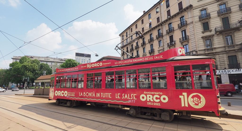 Per tutto il 2021 il leggendario Tram numero 1, che percorre le strade del centro di Milano, sarà vestito "ORCO". Complici lo sferragliamento, l’irresistibile color caldo del legno, le luci dei fari che ne annunciano l'arrivo, l'Orco che campeggia sui tram riporta alla mente immagini poetiche di storia, di casa e di bontà. Una scelta di comunicazione forte, di grande impatto.