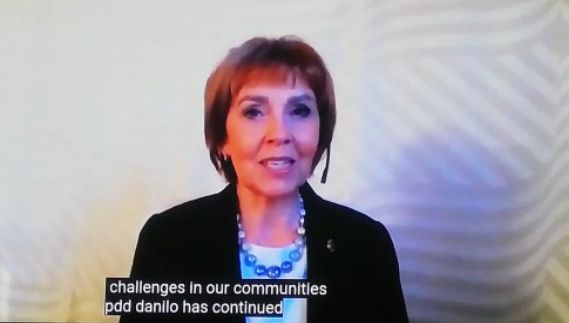 Nella riunione con 5.000 soci collegati, la presidente Gudrun ha rivolto a Danilo Francesco Guerini Rocco il suo grazie “per la tua leadership, la continua fiducia nei nostri programmi e il supporto alla nostra Fondazione e ai nostri service».