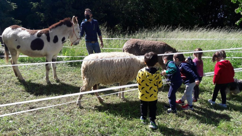 Un po’ scuola dell’infanzia, un po’ arca di Noè, un po’ fattoria didattica: chi oggi, 19 maggio, si è avventurato negli ampi spazi verdi dell’asilo Santa Maria del Cerro, a Cassano Magnago, si è trovato davanti a uno scenario inusuale. Insieme alle maestre e ai bambini, popolavano il prato retrostante il plesso asini, galline, una pecora, un paio di cani, tartarughe. Animali condotti a diretto contatto con i piccoli iscritti, in completa sicurezza, dagli esperti de “La casa degli asinelli”, fattoria educativa di Carbonate.