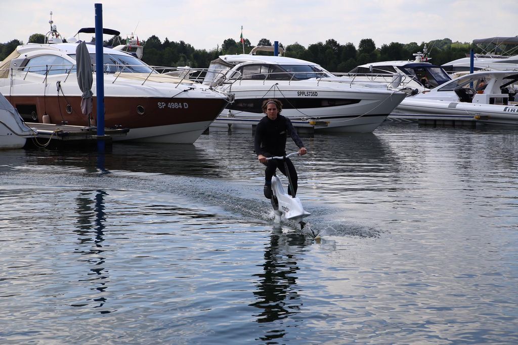 «Ecco perché – riprende Deligios –, nell’ambito del nostro progetto Varese Sport Commission, come Camera di Commercio abbiamo voluto offrire agli operatori turistici l’occasione di entrare in contatto, tra i primissimi, con questa vera e propria bicicletta elettrica che permette di pedalare sull’acqua. Per gli albergatori, il disporre di questi mezzi da mettere a disposizione dei propri visitatori potrebbe costituire un elemento aggiuntivo di competitività. Per giovani intraprendenti, inoltre, potrebbe esserci l’opportunità di avviarsi verso un’eventuale attività d’impresa. Non manca neppure la possibilità, per gli organizzatori varesini di eventi sportivi, di proporre vere e proprie gare in sella a una bicicletta elettrica in mezzo al lago o, comunque, a ciascun corso d’acqua di cui è ricco il nostro territorio».