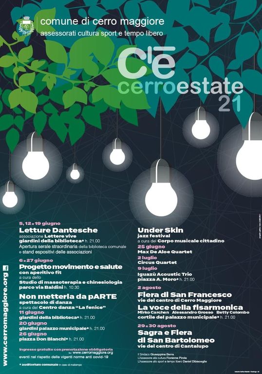«Una serie di eventi che vogliono coinvolgere tutta la nostra comunità, che potranno anche aumentare perché oggi più che mai è importante tornare a vivere, sempre in sicurezza, anche il nostro paese» dichiara l’assessore al tempo libero del Comune di Cerro Maggiore, Daniel Dibisceglie.