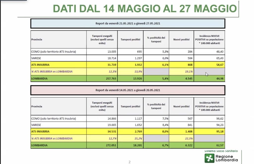 Cala in maniera netta anche l’incidenza, con un valore nel Varesotto di 26,55 nuovi positivi ogni centomila abitanti, rispetto ai 42,13 della scorsa settimana. Numeri da zona bianca, insomma, che fanno tirare un sospiro di sollievo in vista del possibile ingresso della Lombardia in questa fascia dal 14 giugno.
