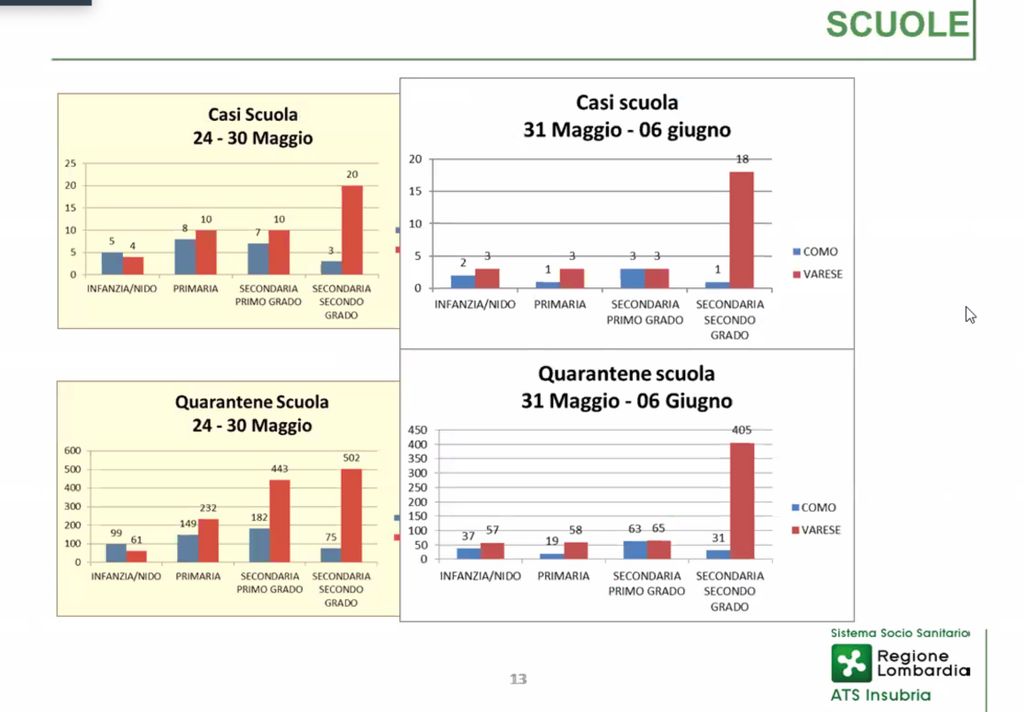 «I dati sono sempre più soddisfacenti - il commento del direttore sanitario di Ats Insubria, Giuseppe Catanoso - Da sottolineare come il numero dei tamponi resti elevato: l’attività di screening procede in maniera attenta».