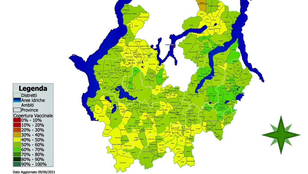 In ultima posizione c'è invece il comune di Brusimpiano con il 48,84% della popolazione raggiunta, seguito da Vizzola Ticino (50,32%) e Masciago Primo (50,63%%).