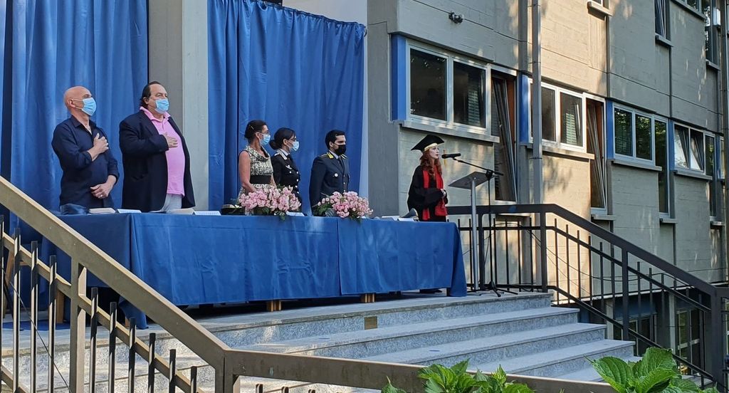 Nel cortile dell’istituto si è tenuta una cerimonia sobria ma molto significativa. Niente rinfresco né momento musicale, ma una giornata comunque da ricordare al termine di un anno sicuramente indimenticabile.
