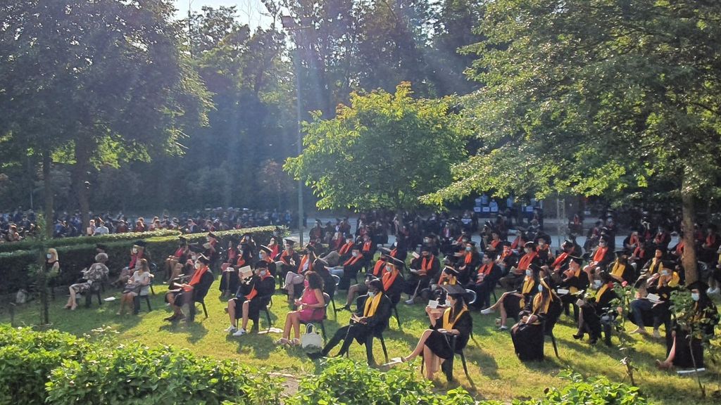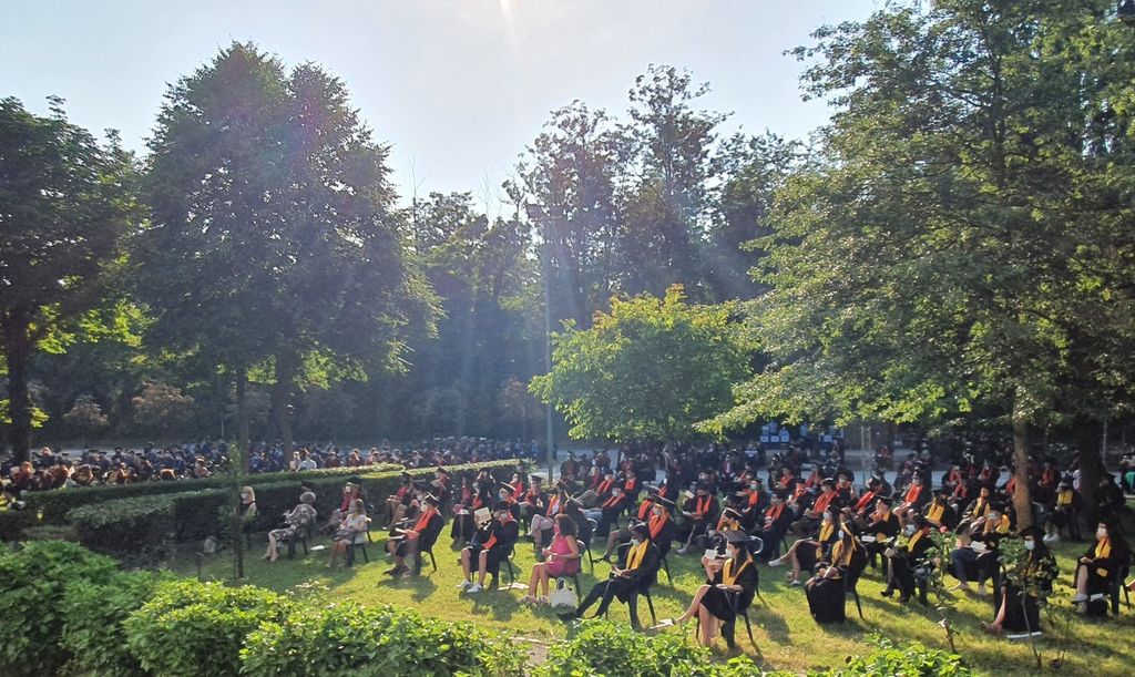 La cerimonia si è chiusa con l’immancabile lancio del tocco. La tradizione, anche se con un anno di ritardo, è stata rispettata.