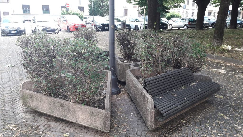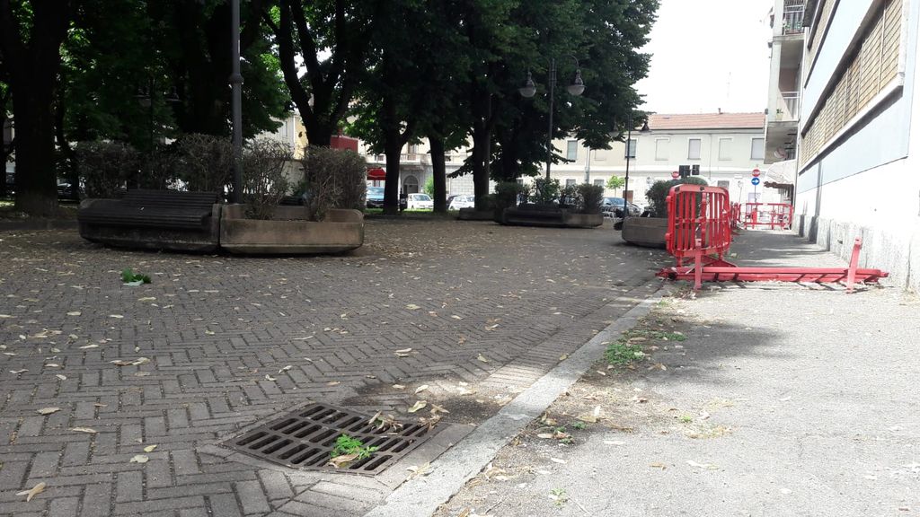 Magari per la presenza di proprietà private finite nel calderone di qualche fallimento. Nessuno si occupa più di certi edifici e dall’alto si staccano calcinacci che rischiano di finire in testa alle persone. Perfino le transenne poste a protezione dei passanti sono lasciate a se stesse (ce ne sono in piazza ma anche verso l’ospedale, a pochi passi dalle scuole Crespi). Intorno alla caserma (via Piave) crescono arbusti alti un metro che infastidiscono i pedoni. E sul lato della piazza già protetto da barriere, posizionate per contenere gli esiti di possibili crolli dagli edifici, ammuffiscono le panchine con fioriere, rimosse dal centro. Da lì, assicura chi frequenta il posto, sbucano pantegane. Da poco sono state piazzate le classiche scatole con esche anti roditori, si spera che sortiscano gli effetti sperati. Ma, a precindere: non ci si sedeva lì, in piazza San Giovanni, non ci si siede lì, in piazza XXV Aprile. Ad accomodarsi, e assecondando la postura imposta dallo schienale, si finisce con la testa fra i rovi.