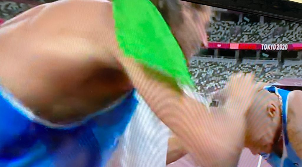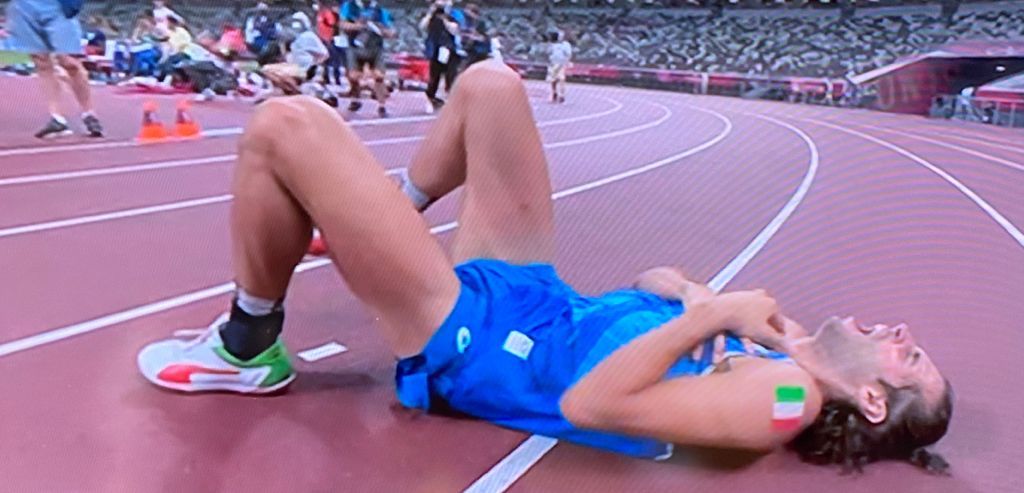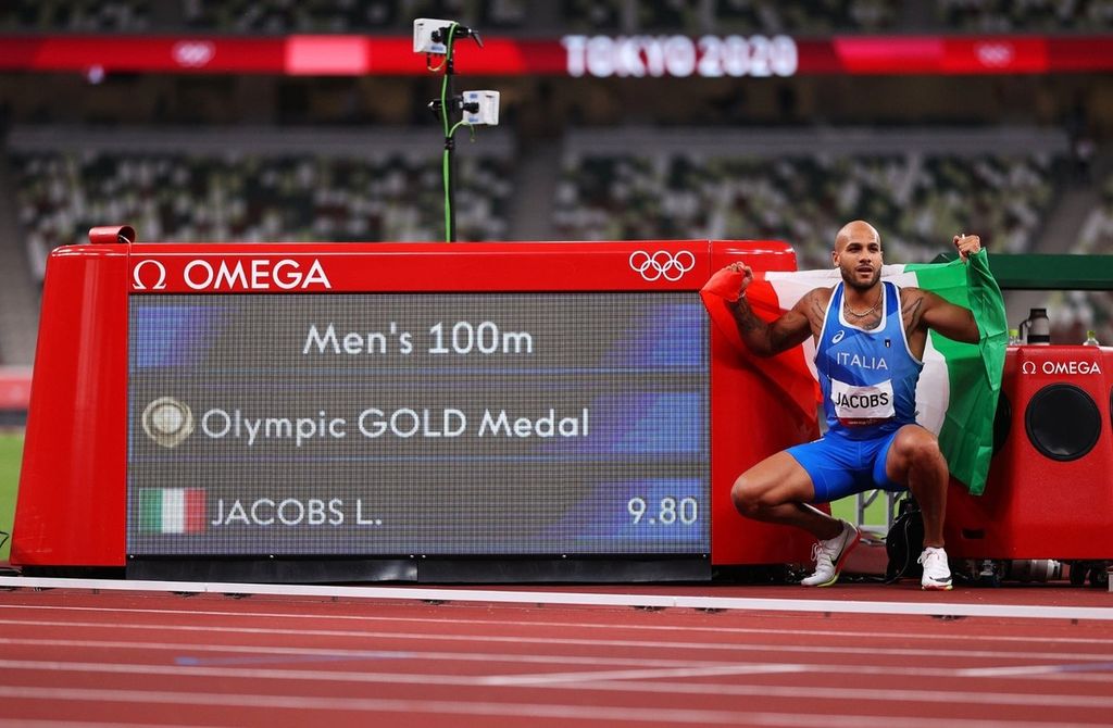 Poi dalla corsia tre della pista dello stadio d'atletica la ciliegina sulla torta: Jacobs corre i 100 piani in 9"80, sbaragliando la concorrenza. È l'uomo più veloce del mondo.