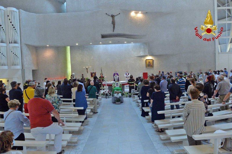 Il feretro è partito dalla caserma di via Legnani a bordo dell’autoscala dove ha raggiunto la chiesa del Kolbe gremita di persone e colleghi, presente alla cerimonia oltre a varie autorità anche il sindaco di Varese Davide Galimberti.
