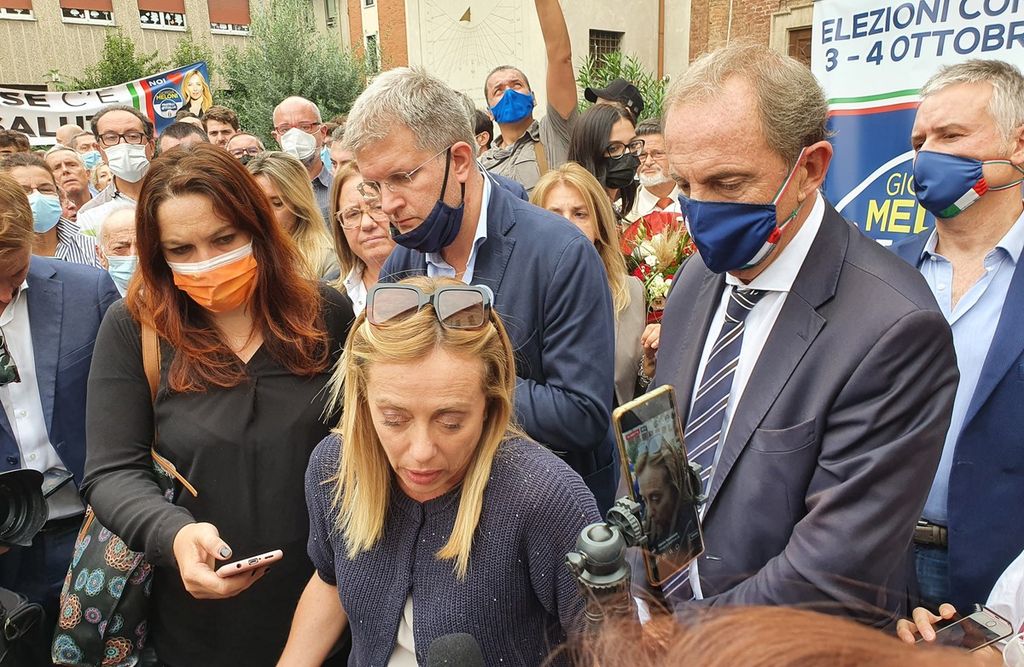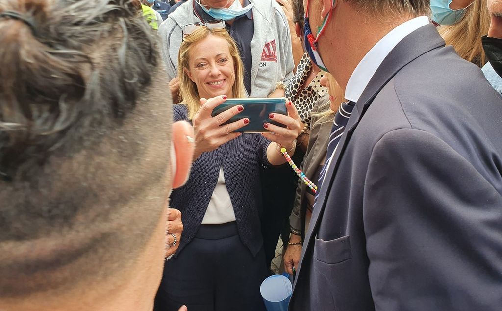 In realtà, il ritardo di quasi un’ora sulla tabella di marcia e la folla accorsa in via Fratelli d’Italia costringono a un cambio di programma, con la leader del partito che farà solo pochi passi, muovendosi a fatica tra selfie e libri da autografare.