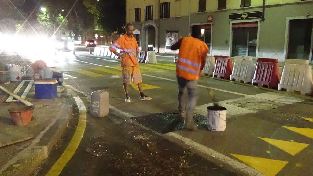 Sul posto il presidente di Agesp Attività Strumentali Alessandro Della Marra e il sindaco Emanuele Antonelli. «Una grande opera - ha detto quest'ultimo durante il sopralluogo - Poi vedremo se saranno necessari dei correttivi». Se giovedì notte gli operai hanno potuto ultimare i lavori con l'assistenza della polizia locale per tenere a bada gli automobilisti, il test vero e proprio è venerdì mattina. Con l'impatto del traffico diurno.