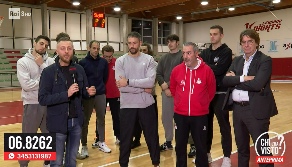 La trasmissione “Chi l’ha Visto” in diretta dal Knights Palace di Legnano con la prima squadra di basket per lanciare un appello a Sebastiano Bianchi, il cestista scomparso in circostanze misteriose lunedì sera e di cui da allora non si sa più nulla