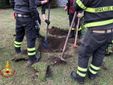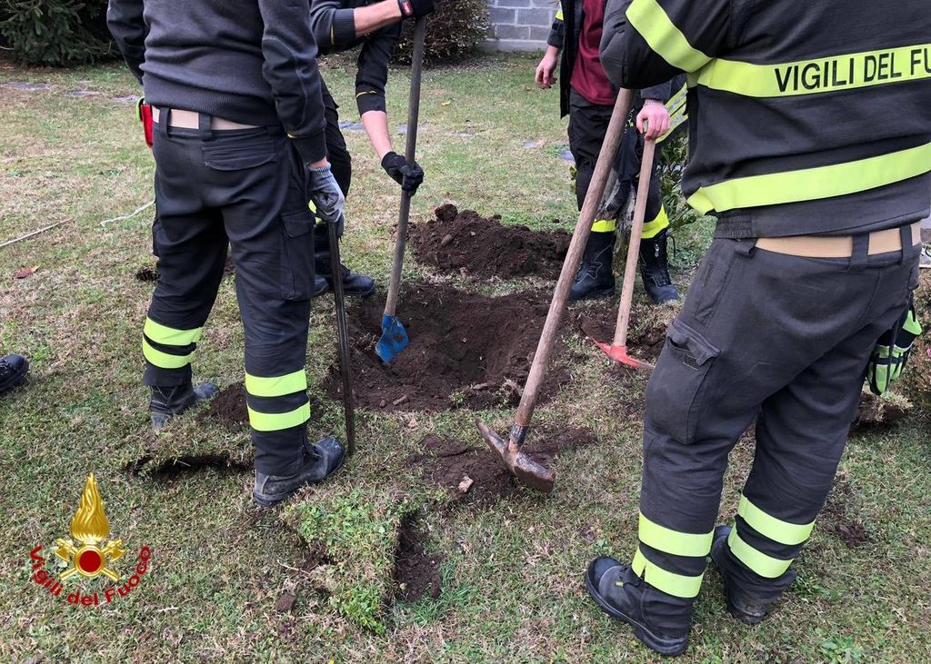 Successivamente è stato necessario effettuare uno scavo nel giardino dello stabile fino a liberare il gatto che è stato salvato e riconsegnato alla proprietaria.