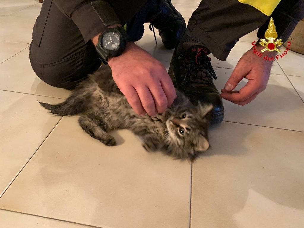 Un gatto si è introdotto all'interno di un sistema fognario rimanendo bloccato. La proprietaria ha lanciato l'allarme. Sul posto sono intervenuti i vigili del fuoco del distaccamento di Laveno Mombello, con un'autopompa e un fuoristrada.