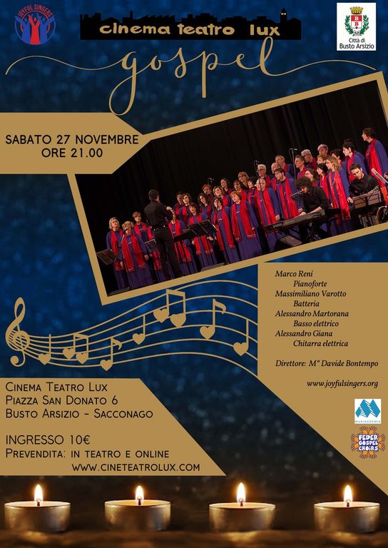 Sabato 27 Novembre, alle ore 21, al teatro Lux di Busto Arsizio ritornano a esibirsi i Joyful Singers.