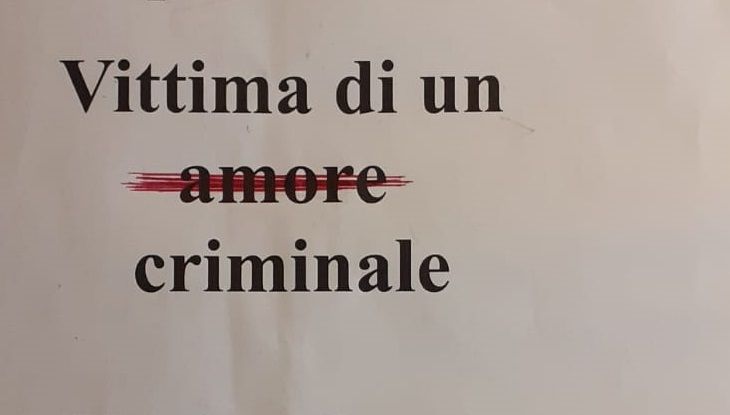 Vittima di un "amore" criminale. Una frase (ce ne sono almeno altre due, da scoprire) per insegnare che le parole sono importanti. In generale e in particolare quando si tratta di violenza sulle donne. La parola “amore” da cancellare, la parola “criminale” come unica definizione possibile per chi si rende colpevole di brutalità e sopraffazione.