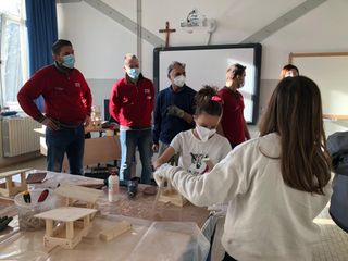Grazie alla generosità e all’entusiasmo dei ragazzi il progetto ha assunto una dimensione più ampia. «Quando ci siamo recati al Bricocenter per acquistare i materiali, spiegando che servivano per un laboratorio scolastico – racconta la professoressa Canavesi – il direttore Danilo Crosio ha deciso di donarceli e di venire a scuola con alcuni dipendenti del punto vendita, tra cui anche due nostri ex alunni, per vedere come stavano procedendo i lavori e per aiutare i nostri piccoli “artigiani” a completare le opere».