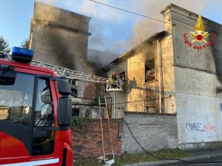 Fabbrica in fiamme, vigili del fuoco in azione a Caronno Pertusella