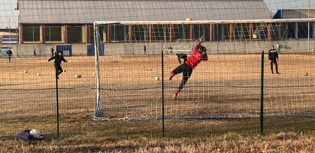 Contano le voci di questi ragazzi, i loro sforzi, la loro concentrazione in vista della sfida di casalinga contro il Piacenza. Sono allenamenti, ma ci mettono la foga agonistica, la voglia di rivalsa, intervallate dalle battute. C'è anche Beppe-gol che mette alla prova Caprile e Mangano. Già, Le Noci (con il suo patentino di allenatore Uefa B in tasca (LEGGI QUI) che un anno fa animava l'attacco e oggi è nello staff della Pro Patria, segna preciso con i suoi guizzi: in questo avvio di settimana, su questo campo distante da tutto, il tempo sembra fermarsi.