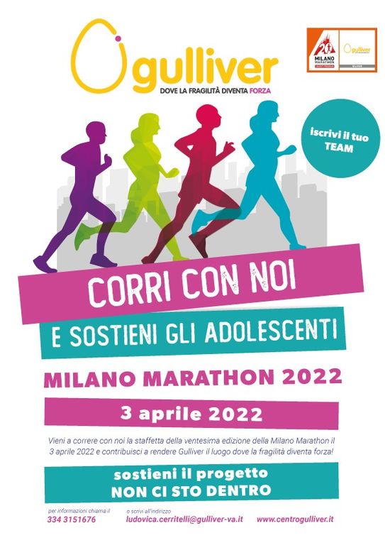 «Per noi – racconta Ludovica Cerritelli, fundraiser del Gulliver, il centro di via Albani a Varese – la Milano Marathon è una grande occasione per far conoscere la nostra mission a quante più persone possibile e per la raccolta fondi a sostegno delle nostre iniziative. Quest’anno, abbiamo deciso di devolvere l’intero ricavato dell’iniziativa al progetto “Non ci sto dentro”, dedicato al sostegno psicologico per gli adolescenti del nostro territorio in continuità con il nuovo payoff (“dove la fragilità diventa forza”) e il nuovo logo recentemente adottati».