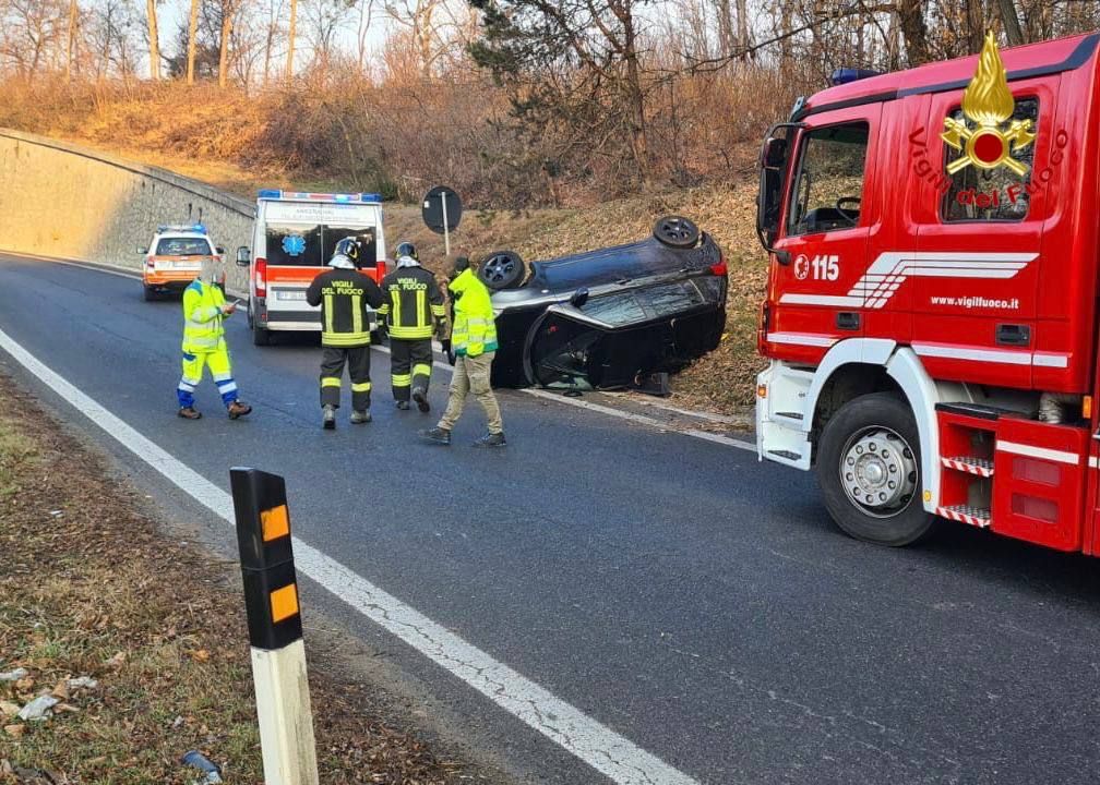 FOTO. Auto si ribalta sullo svincolo dell'A26: paura per una ragazza di 25 anni