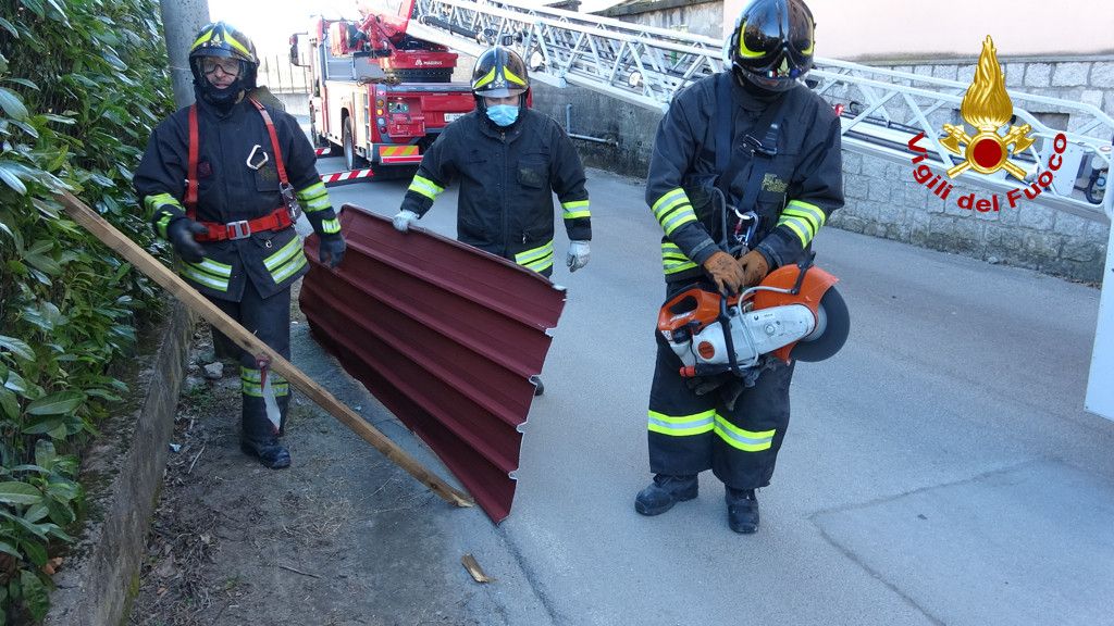 Vento forte su tutta la provincia: alberi caduti, tetti scoperchiati e incendi. Quaranta interventi dei vigili del fuoco, a Malnate Canadair in azione