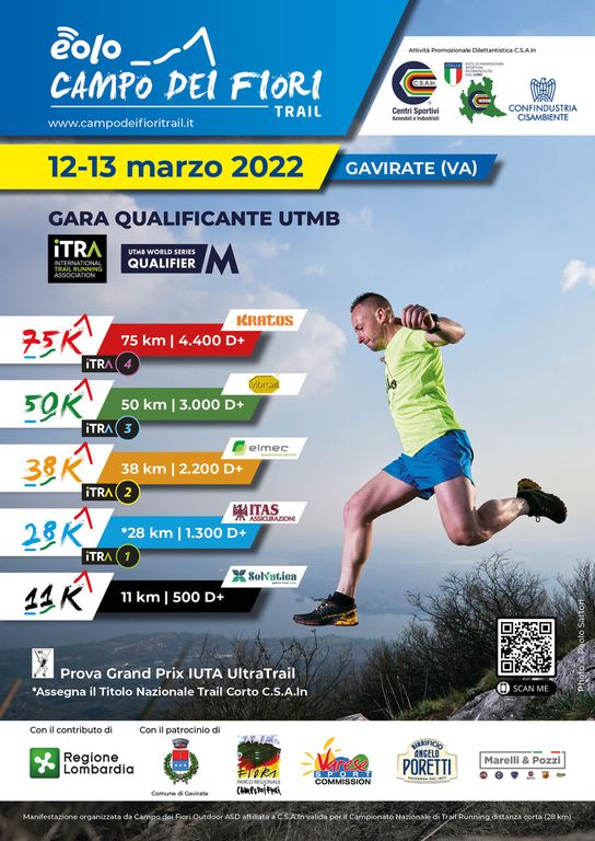 Sabato 12 e domenica 13 marzo si correrà l’Eolo Campo dei Fiori Trail in mezzo al verde delle Prealpi varesine e assegnerà il titolo di Campione nazionale di Trail Running distanza breve C.S.A.In. (Centri Sportivi Aziendali e Industriali), Ente di promozione sportiva riconosciuto dal Coni.