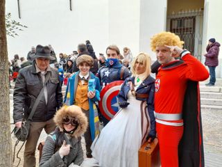 Si concentra sul momento Vincenzo, con consorte e amici. Costumi e cosplay nel curriculum, anche professionale. Oggi, pure lui è Capitan America, in versione filologica. Una vera passione, la sua. «Bella festa. Ci voleva, speriamo che presto si possa tornare a organizzare anche altro».