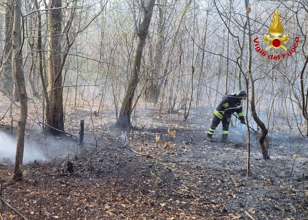 Ancora un incendio nei boschi: vigili del fuoco a Samarate. FOTO