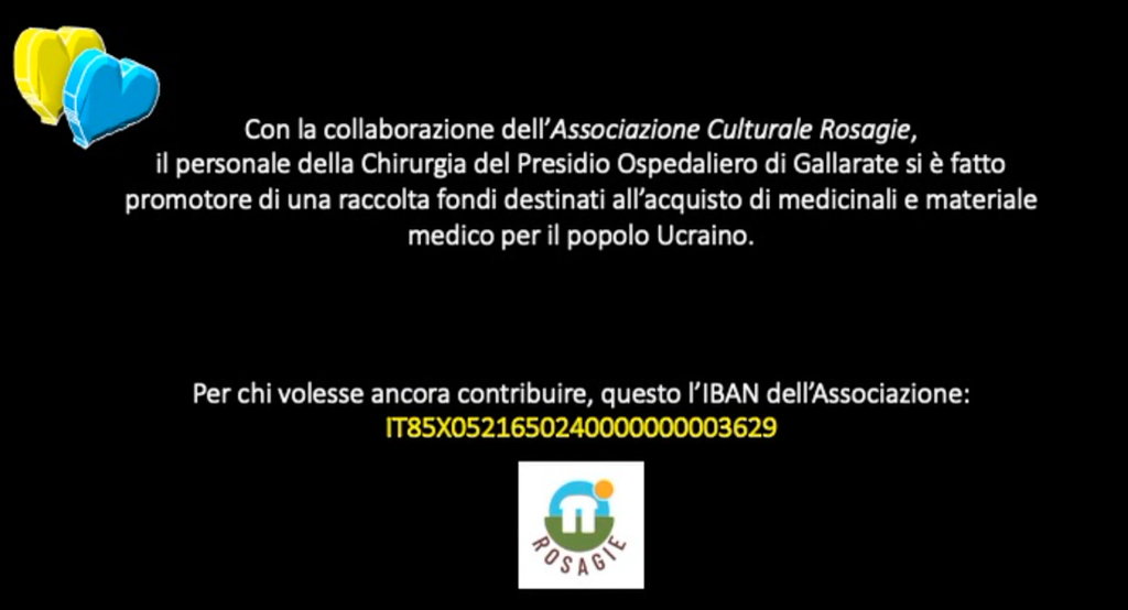 Una raccolta fondi per aiutare la popolazione ucraina colpita dalla guerra. Il dottor Stefano Rausei e tutto il personale del reparto di Chirurgia di Gallarate hanno agito in collaborazione con l’Associazione Culturale Rosagie.