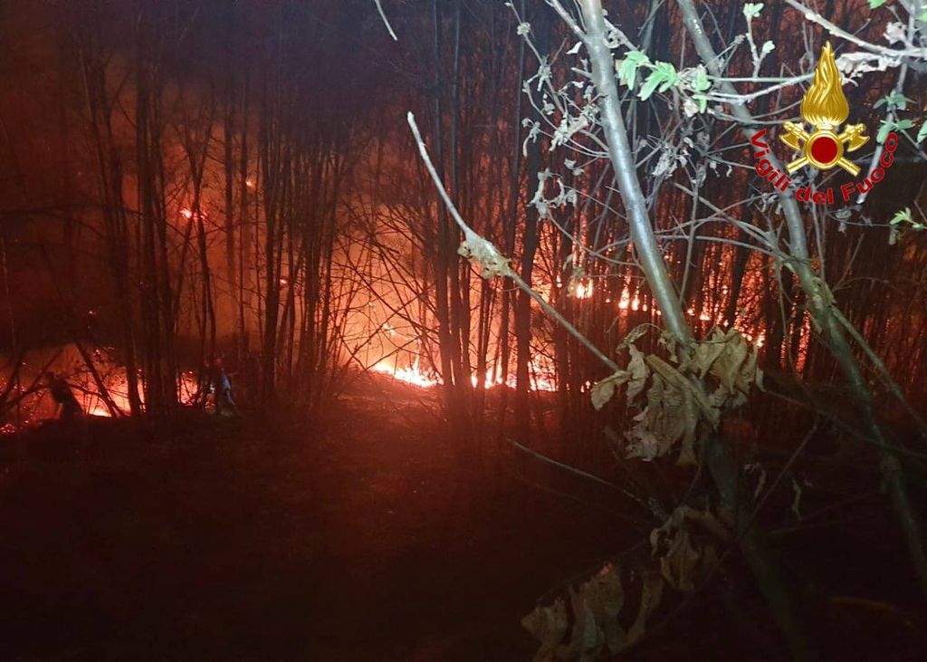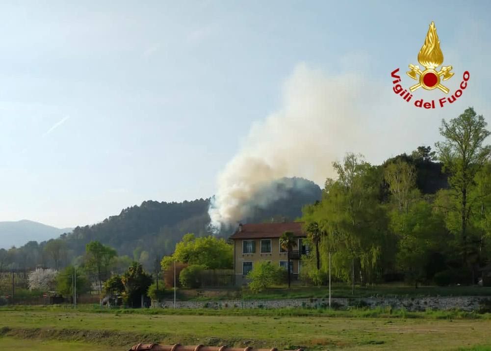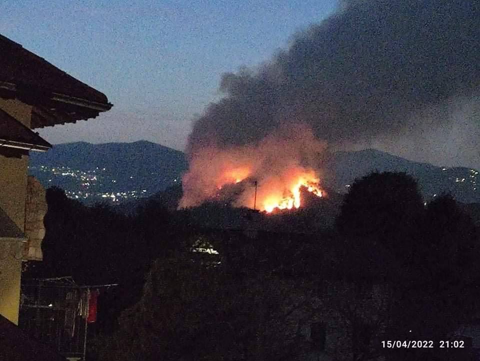 FOTO. Angera, bosco in fiamme sul monte San Quirico. Il sindaco: «Presidi a protezione delle abitazioni»