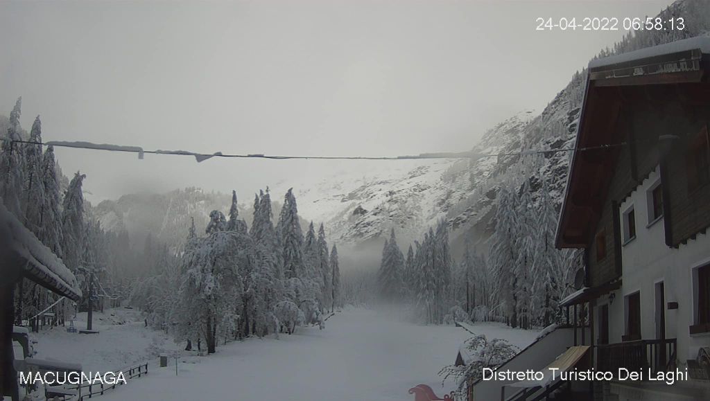 A segnalare la situazione al risveglio è stato l'esperto Gianluca Bertoni, che ha postato alcune località imbiancate dalle webcam sparpagliate in quota tra Verbano Cusio Ossola e Canton Ticino: si va dunque dai 1.700 metri di Riale in Val Formazza ai 1.300 di Macugnaga e al San Bernardino.