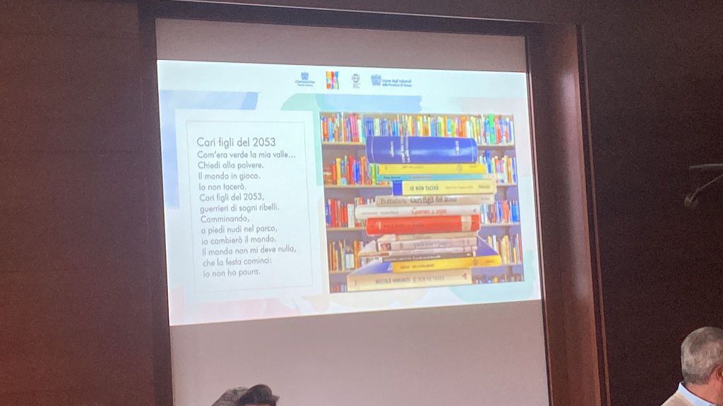 Il premio speciale è stato dato alla classe 1B dell’Istituto Comprensivo E. Crespi – Schweitzer di Busto. Gli studenti, nonostante non fossero inseriti nel concorso dedicato alle terze medie, hanno voluto comunque partecipare all’iniziativa, scrivendo una poesia dal titolo “Cari figli del 2053”. Ma non è una poesia comune, infatti è stata scritta sovrapponendo il dorso di vecchi libri o testi, dimenticati nelle biblioteche scolastiche con l’obiettivo di donare loro nuova vita. Alla dodicesima edizione dell’iniziativa hanno partecipato più di 4.000 studenti per un totale di 203 classi coinvolte.