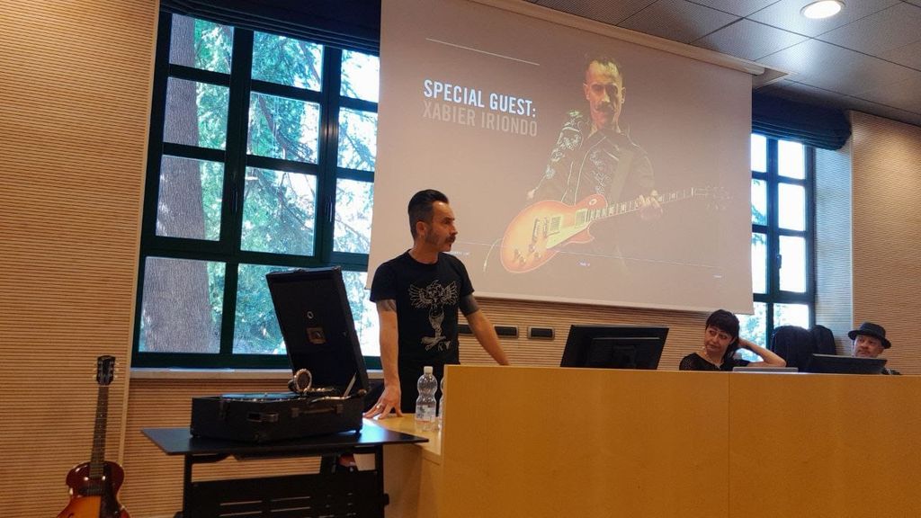 Iriondo, musicista ma anche – e ci tiene a ricordarlo – collezionista – ha condiviso con gli studenti alcuni suoi pezzi, ossia chitarre Gibson dagli anni ‘30 ad oggi, ma anche un grammofono acustico. Un’occasione per rappresentare come il mondo della musica (produzione e consumo) sia cambiato nei decenni e come l’azienda sia riuscita a fare sempre tendenza presidiando questi cambiamenti di rotta.