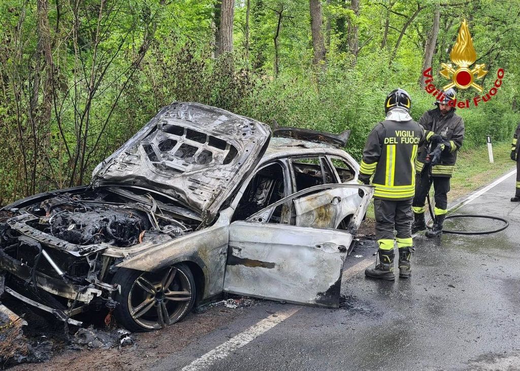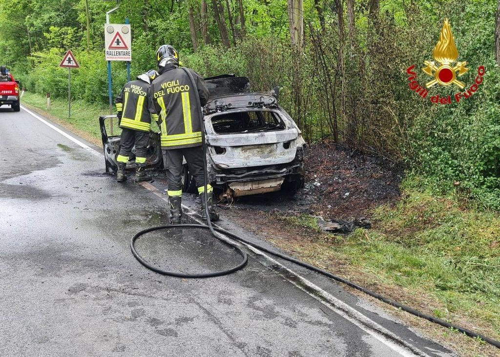 Veicolo in fiamme a Somma Lombardo: il conducente abbandona l'auto in tempo