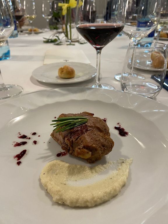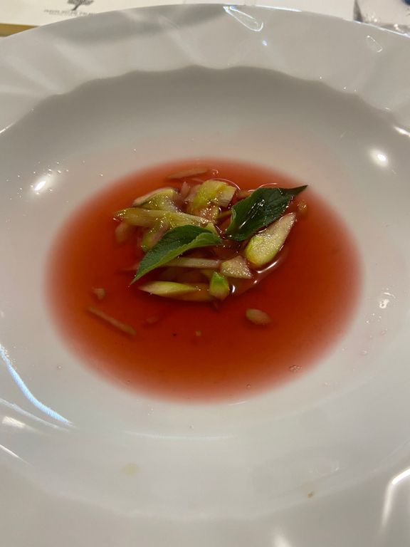 Il menù preparato e servito dai ragazzi in gara prevedeva scampetti su omelette di asparagi, maccheroncini cacio e pepe su carpaccio di salmone, filetto di vitello al vino rosso con purea di topinambur e, come dessert, brodetto di fragole con insalatina di asparagi e zenzero. Ogni portata è stata accompagnata da un vino abbinato.